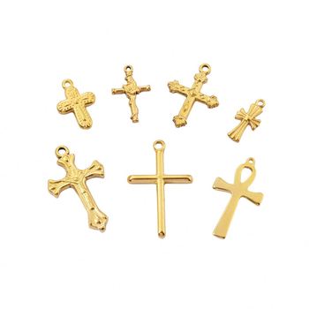 קסמי צלב נירוסטה pvd מצופה זהב 18k תליון עגילי שרשרת עגילי עגילי תכשיטים אביזרים סיטונאי