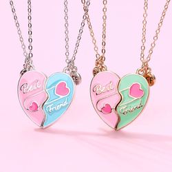 2 יח'\סט הסיטונאי עלה איטי שרשרת לב מטוטלת עבור בנות אמייל שרשרת ידידות אמייל עבור מתנות ילדים